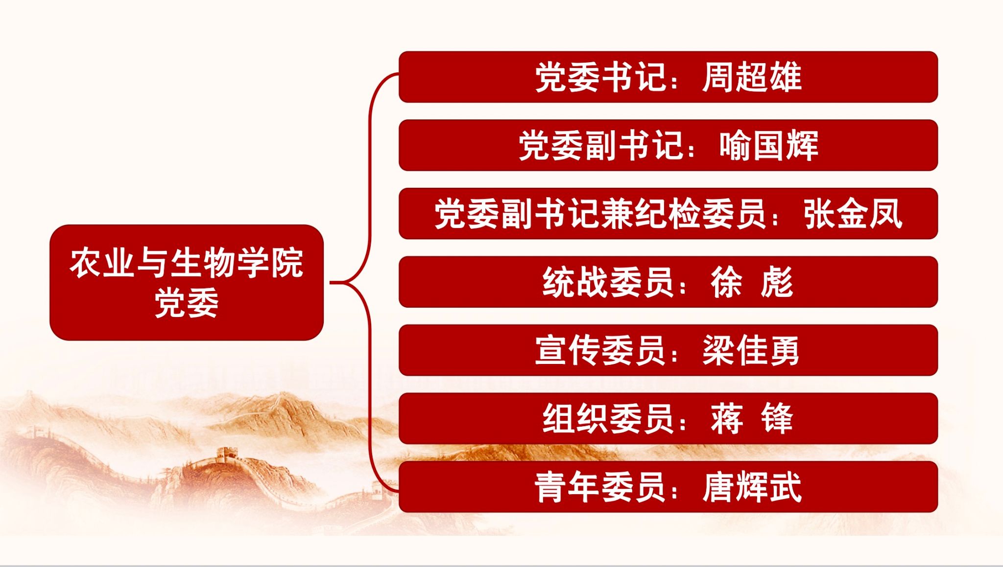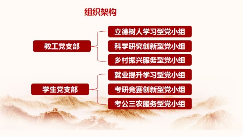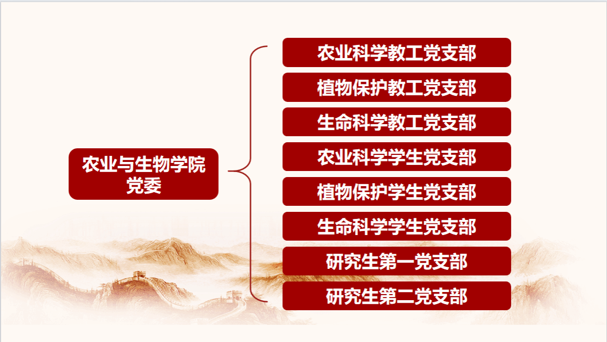 农业与生物公司党委在公司党委的领导下,坚持以马克思列宁主义、毛泽东思想、邓小平理论、“三个代表”重要思想、科学发展观、习近平新时代中国特色社会主义思想为指导,全面贯彻落实党的二十大和二十届二中、三中全会精神,紧紧围绕省委“1310”具体部署及公司更名大学、申报博士点、本科公司产品审核评估、“双百行动”、迎接百年校庆等重点工作,坚持以党的政治建设为统领、以服务大局为导向,凝心聚力促发展,以高质量党建引领公司事业高质量发展。公司党委作为基层党组织,认真按照“新时代党的建设总要求”,坚持和加强党的全面领导,坚持党要管党、全面从严治党,以加强党的长期执政能力建设、先进性和纯洁性建设为主线,以党的政治建设为统领,以坚定理想信念宗旨为根基,以调动全体党员的积极性、主动性、创造性为着力点,以党组织全面过硬为重点,以坚持和强化党的领导、促进发展稳定为工作标准,以加强政治、思想、制度、作风廉政、组织、基本保障建设和基本活动等为主要内容,克难而上,砥砺前行,全面推进公司党委的政治建设、思想建设、组织建设、作风建设、纪律建设,把制度建设贯穿其中,深入推进反腐败斗争,不断提高党建质量,把公司党委建设成为始终走在时代前列、师生衷心拥护、勇于自我革命、经得起各种风浪考验、朝气蓬勃的先进基层党组织。 公司党委坚持以立德树人为根本、以强农兴农为己任,认真落实立德树人根本任务,以提高党员素质,增强党组织凝聚力战斗力,提高教师职业道德水平,践行社会主义核心价值观,把党建工作融入教学、科研、立德树人、文化传承、社会服务工作中,着力抓好党组织和党员队伍建设,明确工作职责、改进工作方法、增强服务功能,提升党建工作水平,为公司各项工作的顺利开展和目标任务的圆满完成提供可靠的思想保证和组织保证。 公司党委由7名同志组成:其中,周超雄同志任党委书记、喻国辉同志任党委副书记、张金凤同志任党委副书记兼纪检委员、徐彪同志任统战委员、梁佳勇同志任宣传委员、蒋锋同志任组织委员、唐辉武同志任青年委员,下设8个党支部。 公司党委在公司党委的统一领导下,在公司党委组织部、宣传部、统战部等有关部门指导下,充分发挥公司党委和党支部两级党组织的积极性,积极推进公司基层党组织工作的科学化、民主化和制度化,扎扎实实地做好“党建+”等党建品牌和党建各项工作。