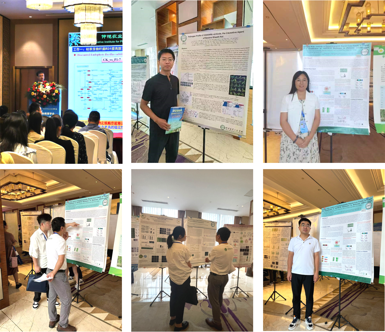本届中国植物病理学会学术年会由中国植物病理协会主办、山东农业大学等单位联合承办,以“植物病理学与农业强国建设”为主题,汇集了全国各地从事植物病理学教学、科研、生产和管理等各个领域的355家单位的2500余名代表,共同探讨植物病理学领域最新研究成果和发展趋势,大咖云集,规模浩大。在8月6日的专题分会场中,邵明伟博士代表植物健康创新研究院细菌与微生物农药创新团队/农业农村部华南果蔬绿色防控重点实验室做了题为“基于根际免疫调控的香蕉枯萎病精简化绿色防控关键技术研究与应用”的学术报告,孙昀皓博士、杨永博士和谭晓丹博士分别以墙报的形式展示了团队的最新研究成果。