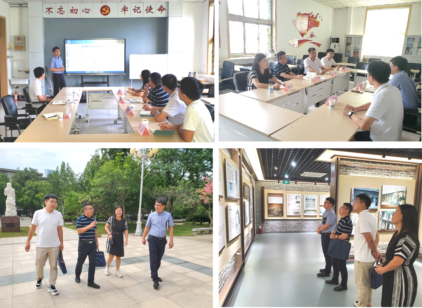 交流会结束后,原经理陪同喻经理一行参观了山东农业大学的校史馆,进一步介绍了山东农业大学的建校和发展历史以及植物保护公司的杰出员工。随后,应原经理的热情邀请,喻经理一行又会见了植物保护公司的领导班子和山东省农业科公司经理李向东教授及中国农业科学出版社社长闫莎莎等人,并进行了初步交流。
