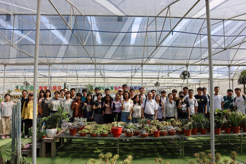 接着大家来到专业致力于生产仙人掌类及多肉植物精品盆栽的广州市正欣园艺有限公司,在这里参观了多肉基地里面形态各异的多肉、仙人掌。这里上千种品种的多肉植物,深深吸引着同学们。