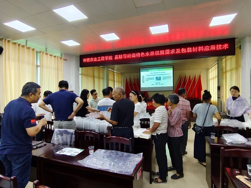 报告会激发了果农们的极大兴趣,他们积极咨询保鲜技术的细节,并探讨了波罗蜜等其他水果的保鲜适用性。会后,专家团队向果农免费提供了荔枝保鲜包装材料,包括采用创新多层复合涂层工艺的包装盒和保鲜袋,这些材料能有效进行气调保鲜,延长荔枝的货架寿命。