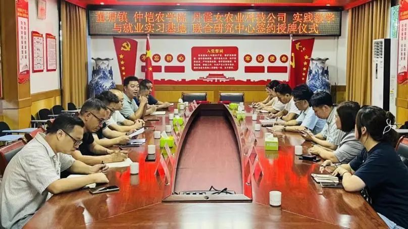 在董塘镇,调研人员受到当地政府和农业龙头企业的热烈欢迎,三方举行了座谈交流。参加会议的有董塘镇党委书记刘志坚、镇长黄志军、镇人大主席郭粤、常务副镇长张祖强以及韶关丹霞女农业科技有限公司总经理申丽萍等。