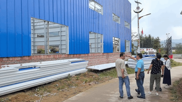 随后,大家前往稻米的厂房参观,目前只搭建了基本框架,唐老师建议引进先进的稻米加工技术、工艺和设备,尤其是烘干设备。省供销社邓可然作为广东言粮农业有限公司的技术顾问,重点关注搭建厂房过程注意的问题和稻米销售问题等。