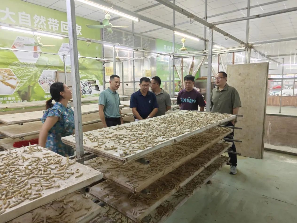 随后,到长岐镇新联村稻花鱼项目、新联亿圣桑蚕种养专业合作社实地调研,对稻花鱼项目给出了建设意见,在新联亿圣桑蚕种养专业合作社,林森博士现场对桑蚕种植与养护等知识进行技术指导。本次科技帮扶工作通过番薯高产高效栽培技术与农产品直播带货实操技巧培训、实地调研产业种植、养殖基地,提升了农业生产效率与销售能力,为乡村振兴战略的深入实施和现代农业的快速发展,提供了技术支撑与营销新路径。