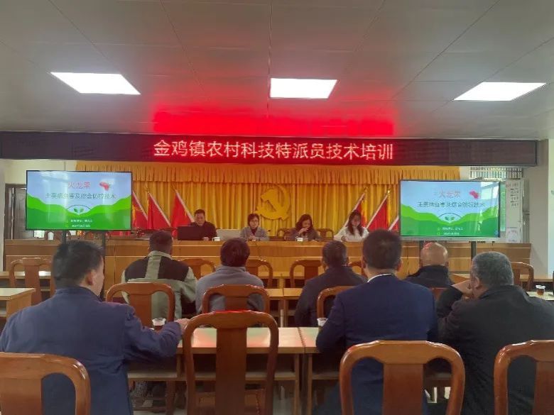 上午,科技特派员团队抵达罗定市金鸡镇后,与金鸡镇驻镇帮镇扶村工作队队长叶丽平等同志在金鸡镇人民政府会面,就金鸡镇火龙果产业最新发展状况进行交流。针对金鸡镇火龙果产业发展现状,科技特派员在金鸡镇人民政府多媒体培训室为乡镇干部及种植户开展相关技术培训。颜珣研究员开展火龙果主要病虫害及综合防控技术培训讲座,对火龙果品种、种植技术、常见病虫害种类、病虫害综合防控方法及注意事项等进行了系统详细的讲解,并将综合防控及绿色农业的理念传播给在场的培训人员。团队邀请了新兴县绿丰优果农业科技有限公司孔林发开展火龙果高产种植技术培训讲座,从火龙果丰产栽培管理要点入手,带领村民学习相关管理方法与技术操作,图文并茂,通俗易懂,为火龙果种植户农业生产实践提供了扎实的理论支持与技术保障。