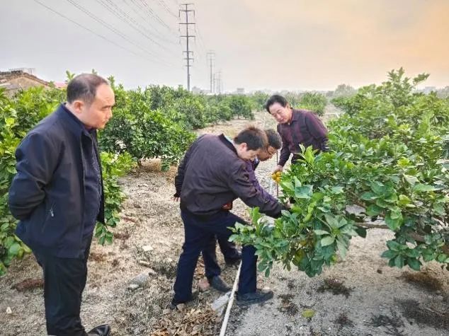 在陇田恒彬种植农业合作社的柑橘种植基地,齐永文详细调研柑橘种植情况,对柑橘病虫害防控给出建议。张明亮鼓励农户构建柑橘全渠道多元化销售网络,在稳产增产的基础上,探索柑橘产业可持续发展的新路子。