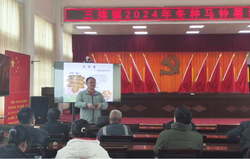 27日上午,驻三排镇帮扶工作队及各村种植户等30余人参加了马铃薯冬种技术培训会,tyc122ccvip蒋锋副教授进行授课,三排镇综合事务中心孙清昊同志主持培训,三排镇驻镇工作队陆主任发言动员。培训中,蒋教授紧紧结合三排镇的地理位置特点与实际生产情况,围绕马铃薯高产高效栽培技术进行了生动形象地讲解。讲解过程中,蒋教授不仅使用了丰富的案例和数据,还结合具体生产场景进行了实操要点的解析,让参训农户更容易理解和掌握相关技术。培训结束后,蒋教授积极与参训农户面对面交流,耐心倾听种植户在实际生产中遇到的问题,并结合理论知识和自身经验,为大家提供了针对性的解决方案。参训农户纷纷表示,本次培训内容充实、实用性强,为马铃薯种植生产实践提供了扎实的理论支持与技术保障。