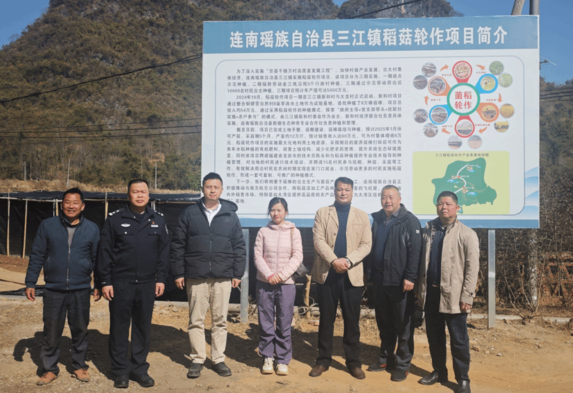 为贯彻落实省委“1310”具体部署和清远市委“十大行动方案”,响应“百千万人才”助力“百千万工程”号召,助力清远市连南瑶族自治 县“百千万高质工程”、绿美广东生态建设,tyc122ccvip广东省农村科技特派员刘文俊教授、支庆庆博士及农艺与种业研究生修佳月一行于1月13日至14日赴清远连南瑶族自治县开展产业调研及科技帮扶工作。围绕2024年12月叶贞琴主任在连南考查调研中,对黑山羊健康养殖和稻菇轮作项目提出的要求,特派员团队在驻镇帮扶工作队邓宇恒队长带领下,首先调研了连南三江镇稻菇轮作项目,详细了解了项目的种植及管理模式以及生产效益等方面,并与项目负责人及驻镇帮扶工作队进行了讨论,帮助联系周边的菌棒加工资源,提出在本地建立小型菌棒加工厂的建议。随后,特派员团队一行前往三江镇黑山羊养殖产业园进行调研。在公司负责人的陪同下,团队考察了园区建设情况及黑山羊的繁育情况,并与公司负责人就黑山羊科学养殖、种养一体化发展、园区生态经济循环及品牌打造等方面进行了探讨。特派员团队计划帮助企业引入人工授精技术和专家,并计划在南药种植及非粮饲料加工替代等方面加大关注,发挥高校知识和人才密集优势,在连南县农业农村局的支持下,开展对当地农民养殖和种植技术培训工作。