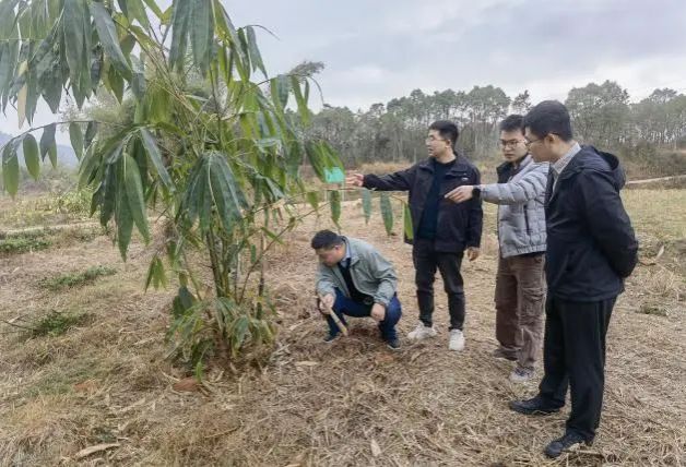 次日,在义合镇党政办工作人员林金利的指引下,科技特派员团队和驻镇帮扶工作队来到义合镇进行调研,了解义合镇竹笋种植情况。经实地考察和负责人介绍,发现竹笋的成活率极低,生长缓慢。针对以上问题,特派员团队认为,可能是竹笋的种苗质量有问题,或者是土壤粘性较高,不利于竹子根系生长和水分吸收,建议种植前对土壤进行改良,后期及时施肥。