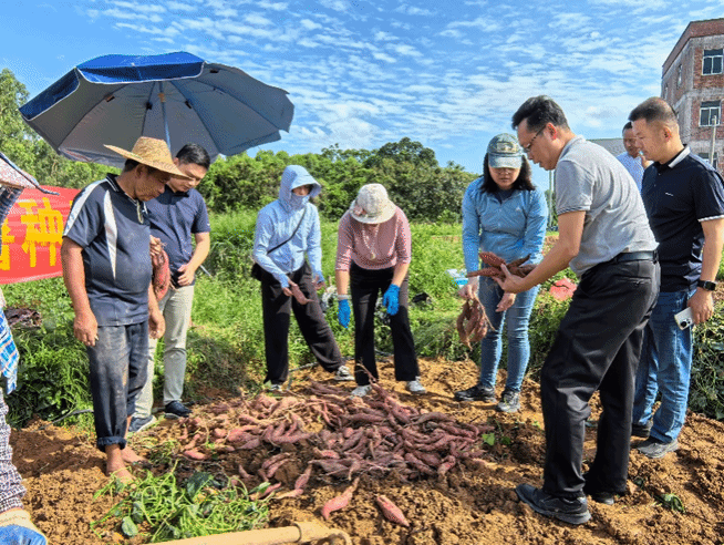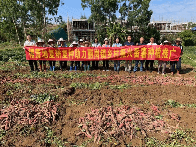 团队成员罗梅、姚汉芳、童伴玲以及珠海驻丽岗工作队队长石也言等多次深入田间地头。特派员们手把手传授种植技术,现场示范操作要点,确保每一项技术措施都能精准落地和生根发芽。在科技特派员的引领下,农户们从传统的种植模式逐步迈向科学化、规范化种植,不仅提升了番薯的产量和品质,更为乡村振兴注入了强劲的科技动力,让曾经的撂荒地成为助力乡村振兴的“希望田野”。