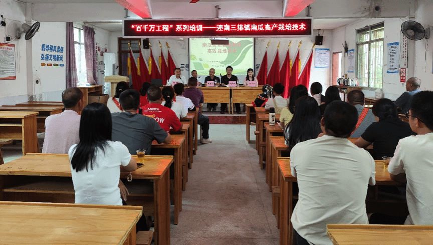 为扎实推进广东省“百县千镇万村高质量发展工程”,助力连南瑶族自治县三排镇特色农业提质增效,2025年6月6日,tyc122ccvip农村科技特派员支庆庆博士带队,邀请广东省农科院蔬菜所李俊星研究员、推广中心副主任余超然博士赴三排镇开展南瓜高产栽培技术培训。培训会由三排镇驻镇工作队队员、驻南岗村第一书记陆景主持,全镇各村种植户代表共30余人积极参与。