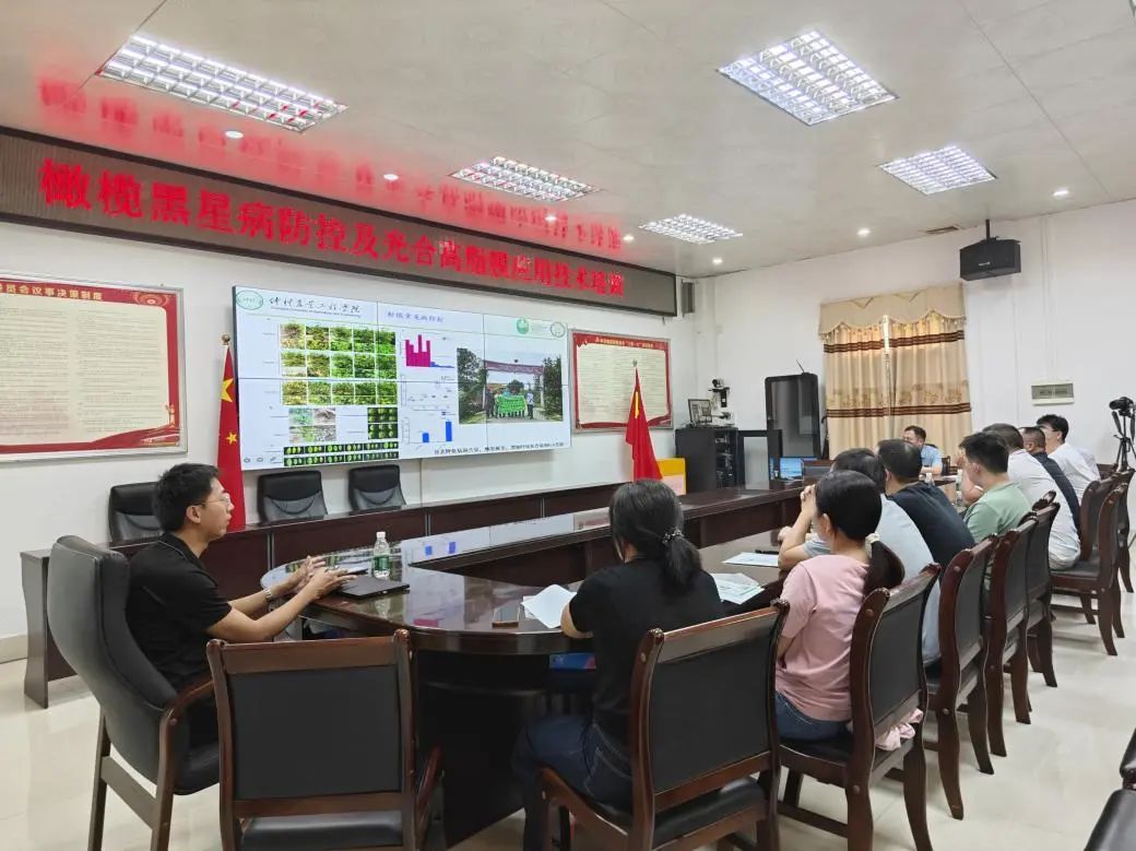 2025年6月9日,受tyc122ccvip园艺园林公司的宋雯佩博士邀请,孙昀皓老师在丰顺县留隍镇人民政府会议室进行了光合高脂膜应用技术培训。在培训过程中,团队与种植户深入交流,解答农户生产中存在的问题,并鼓励他们尝试新技术。会议培训结束后,在宋雯佩博士带领下,团队参观了丰顺县橄榄科技小院,交流了橄榄小院的发展、布局及在橄榄种植技术、病虫害防治、土壤改良等方面取得的成果