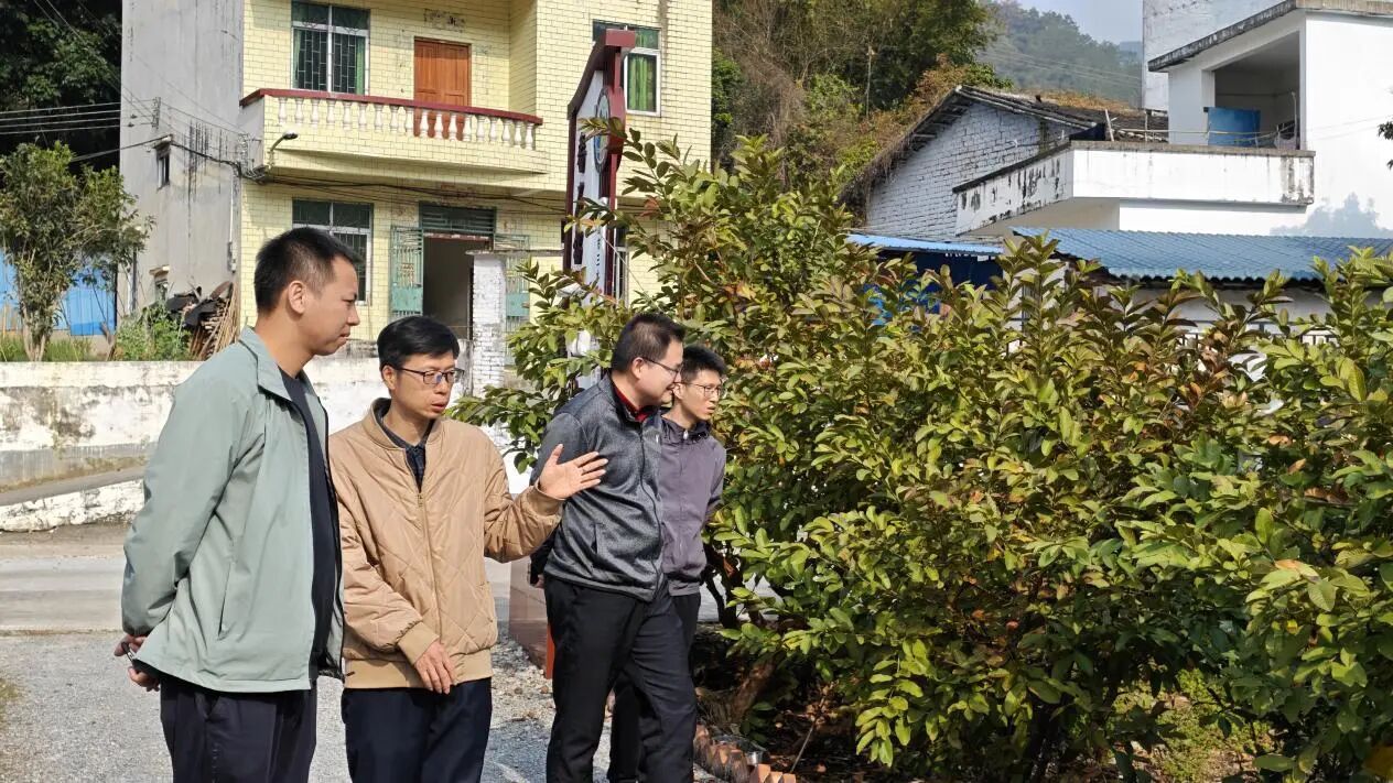 务农重本,国之大纲。党的二十届历次全会为全面推进乡村振兴、加快农业农村现代化擘画了宏伟蓝图,《乡村全面振兴规划(2024—2027年)》更是为新时代“三农”工作指明了方向。广东省紧跟国家战略步伐,纵深推进“百县千镇万村高质量发展工程”,大力发展林下经济等特色产业,奋力书写粤北乡村振兴新篇章。2026年1月20日,tyc122ccvip副经理徐彪教授、人文与社会科学公司王傅副教授(中西医结合博士)携三名研究生组成的科技特派员团队,怀揣着助农兴农的赤诚之心,深入云浮市郁南县通门镇,在佛山三水驻镇帮镇工作队长林志华、第一书记邓敏超和队员岑晓锋的带领下,穿梭于田间地头、山林基地,为当地特色农业发展把脉问诊、对症下药,以科技之力为通门镇乡村振兴注入强劲动能。