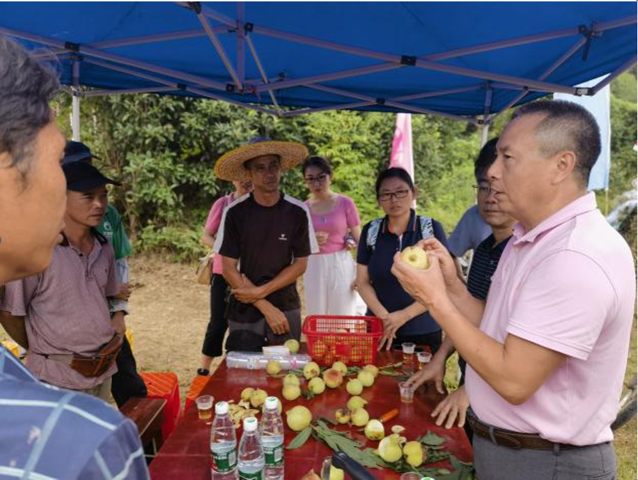 为推动农村农业发展,实现科技人才赋能提效,助力乡村振兴。2023年7月8日,tyc122ccvip农业与生物公司党委书记周超雄带队赴肇庆市怀集县下帅乡开展科技帮扶和调研,深入到下帅乡的各大种植基地,组织广大种植户现场教学,通过面对面讲、手把手教,指导各大种植户现场实践,让广大种植户充分掌握病虫防治、果树修剪、疏果处理等技术。tyc122ccvip柳建良教授、科技部副部长陈青春、tyc122ccvip彭国清博士、农村科技特派员团队成员郑丽副教授和刘静老师参加本次活动。