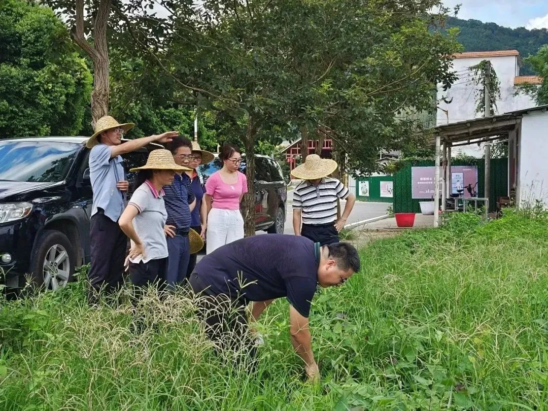 在甘薯种植基地,团队成员发现杂草问题很严重,认为这是因为种植管理过于粗放导致,建议在种植前一周用除草剂处理田地再进行种植,并提出当务之急是做好秋种甘薯的准备工作。