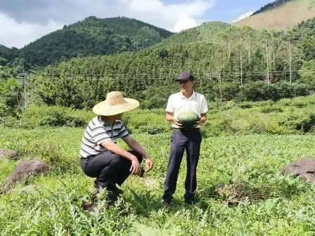 在竹六村的西瓜种植基地,西瓜长势良好,西瓜已经开始成熟可以采收。陈青春提出在种植中,西瓜和柚子套作有利于青柚生长,减少杂草,且增加经济产值。在西瓜采收后要注意及时补充钾肥,防止柚子营养不够影响树体生长。采收后西瓜藤可以和杂草一起用旋耕机打碎在田间还田腐熟。柚子需要在冬天修枝塑形,一生三、三生九,生长高度在3 m左右即可。