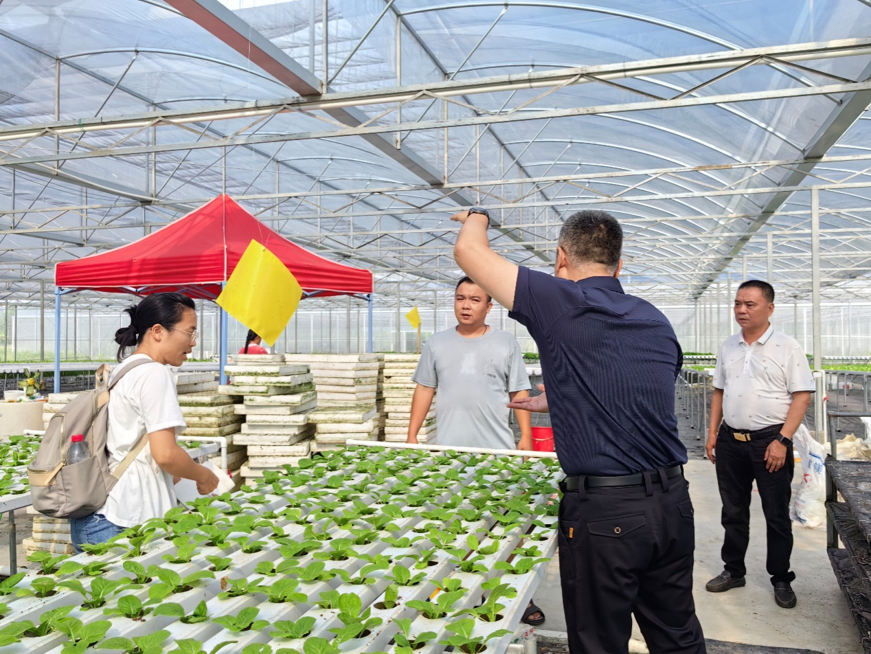 在驻镇帮镇扶村工作队副队长、驻高明村第一书记王晓亮书记的带领下,特派员团队首先来到了高明一号蔬菜大棚,技术员反应,用上特派员带来的粘虫板、优化杀虫技术后,原先的蚊虫肆虐问题有了极大的缓解。