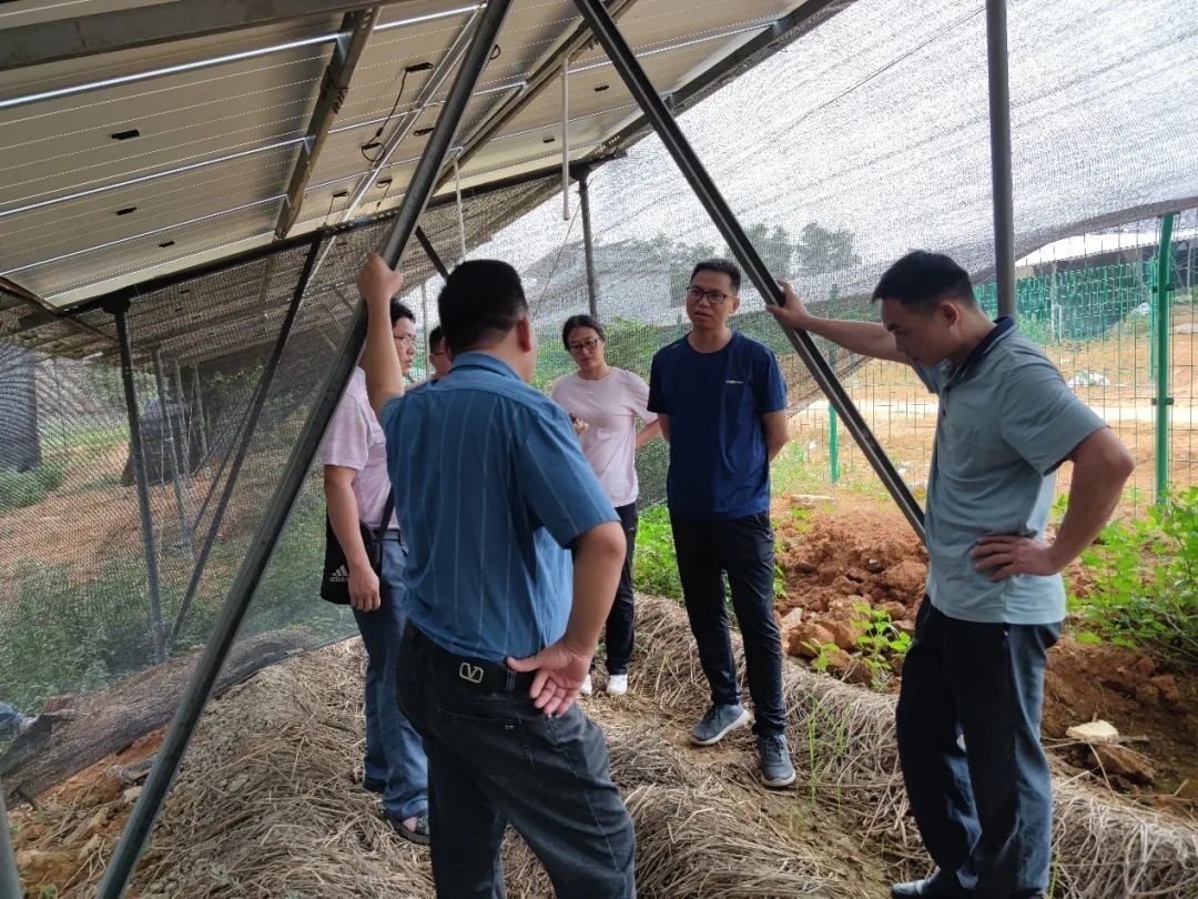 随后,特派员团队调研了船步镇船北村光伏板下食用菌种植基地,船步镇副镇长陈应运详细介绍了北村光伏食用菌种植情况以及种植过程中存在的问题。针对光伏食用种植中存在的问题,徐彪教授表示,光伏下温度较高,建议选择高温型食用菌品种,合理搭建菇架,减少高温以及雨水对蘑菇种植的影响。同时特派员团队将持续跟踪船北村光伏板下食用菌种植基地蘑菇种植中存在的问题,积极提供相应的技术支持。