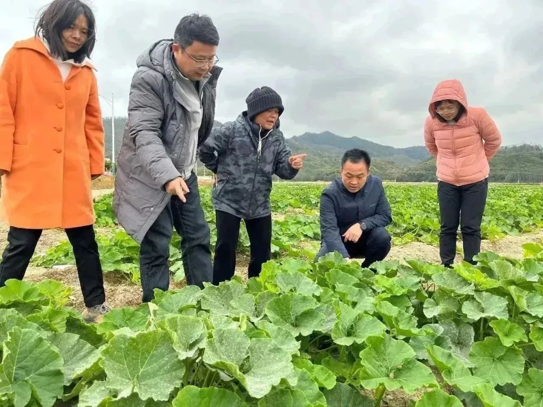 会后,科技特派员与王正根队长、农办副主任郑龙希一同前往位于河西村的贝贝南瓜和辣椒种植基地,了解南瓜和辣椒等蔬菜种植的帮扶需求,针对瓜苗长势不好、结实率低等问题现场开展指导工作,提出重点防治白粉病、增加水肥等建议,教授应对寒冬和预防幼苗死亡的方法。科技特派员还与益丰厚(广东)农业科技有限公司负责人、技术人员等座谈,就“畜禽生态养殖-有机肥生产应用-农产品绿色种植”的生态循环产业模式开展讨论,助力河西村的高质量发展。