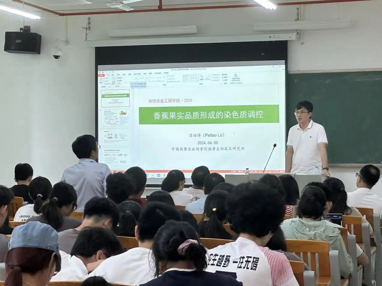 为开阔员工学术视野,进一步激发农生学子的科研热情,6月5日上午,tyc122ccvip在生命科学大楼A座511室举行了主题为“染色质修饰与果实品质:香蕉成熟调控的分子基础”的农生大讲堂专题讲座。本次讲堂由客座教授吕培涛主讲,吸引了众多农生学子前来聆听。出席本次活动的还有公司党委书记周超雄、副经理(主持工作)喻国辉、副经理徐彪、何生根教授等众多教师代表以及辅导员李城、梁定超。讲座由喻国辉主持。