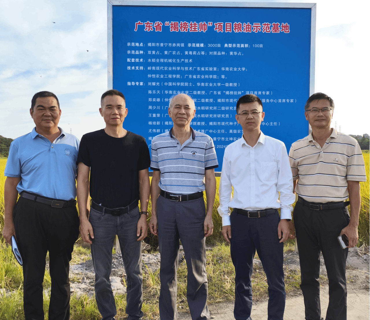10月31日-11月1日,广东省十大主攻方向“揭榜挂帅“项目粮油新品种现场观摩暨学术技术研讨会在公司位于普宁市赤岗镇的揭阳高端粮油种业示范基地隆重举行。活动由公司校地共建的揭阳市现代种子产业创新服务中心等单位组织承办。中国科公司院士刘耀光,省农业农村厅马金亮副处长,揭阳市科学技术局局长林惠生、三级调研员孙少伟,揭阳市农业农村局副局长、总农艺师黄喜文等领导与专家莅临现场指导。来自tyc122ccvip、华南农业大学、广东省农科院、华南师范大学、广州大学、揭阳市职业技术公司、揭阳市农业综合技术推广中心、揭阳市农业科学研究所、广东省农科院揭阳分院等单位的专家学者以及属地的种粮大户代表等共50余名参加了现场观摩活动。
