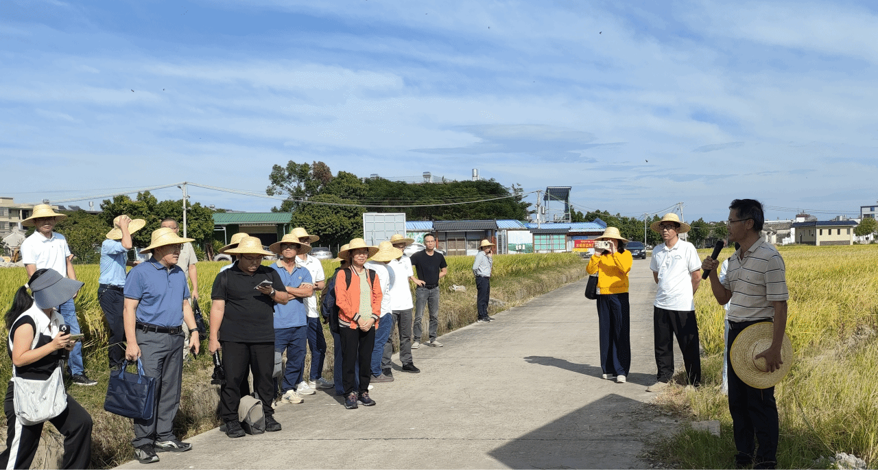 现场观摩交流环节,公司知名老专家、省“揭榜挂帅”项目骨干成员、省花生大豆产业技术体系首席专家、揭阳市现代种子产业创新服务中心兼职首席专家郑奕雄教授介绍了粮油示范基地合作共建情况;省农科院水稻研究所王重荣研究员逐一介绍了展示示范的水稻新品种,普宁市立坤农业专业合作社社长梁立坤介绍了合作社农机托管业务及示范基地配套的水稻全程机械化生产技术。