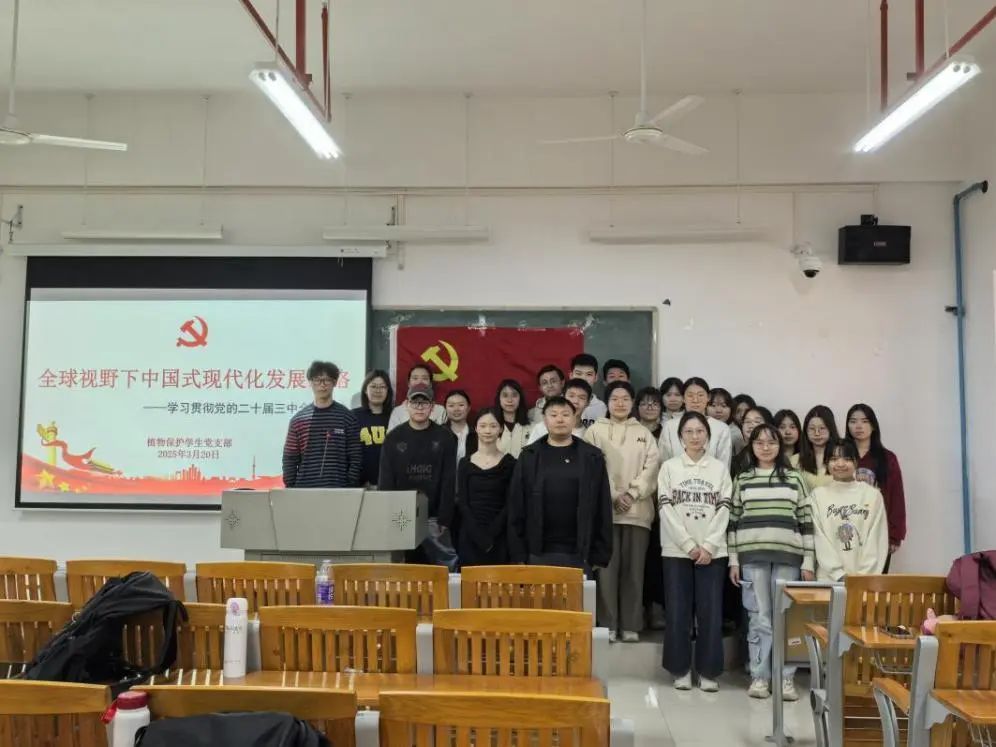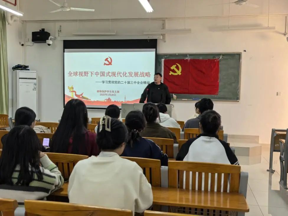 2025年3月20日,tyc122ccvip植物保护员工党支部召开专题党课,深入学习贯彻党的二十届三中全会精神。党支部书记李城以“全球视野下中国式现代化发展战略”为主题,面向支部全体党员、发展对象及入党积极分子展开深度解读,推动全会精神内化于心、外化于行。