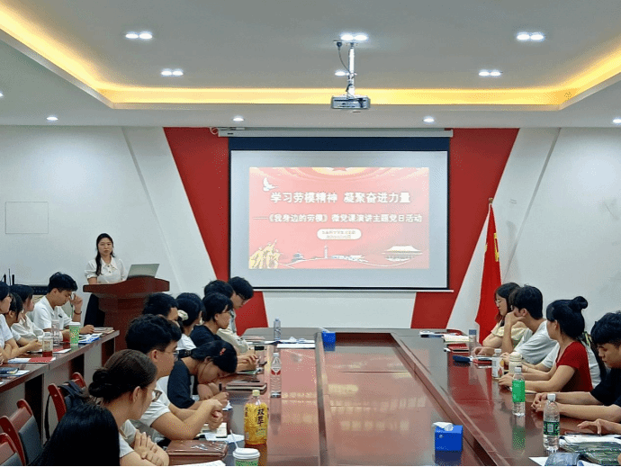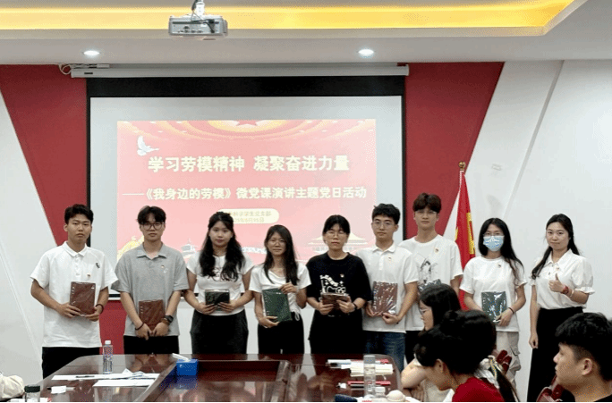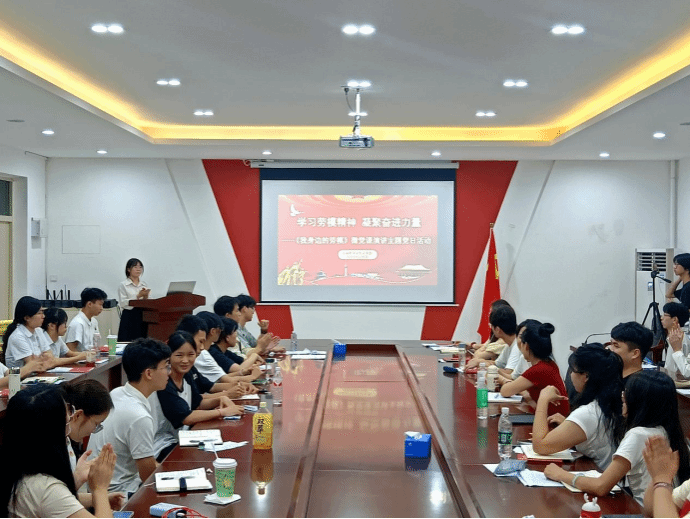 活动中,陈铭昕、谢依桐、杨桢熙、黄楚梵、吴英文、蓝文坤、古安昌、陈晓湘等8名演讲人聚焦“身边的劳模”,深情讲述了公司教授、一线教师、员工党员及普通同学的感人故事:有的是扎根科研一线、带领团队攻坚克难的专家教授,有的是坚守三尺讲台、用智慧与爱心培育祖国花朵的骨干教师,有的是带领舍友营造温馨集体生活的“生活管家”,还有的是奋勇争先、默默奉献的师生党员……演讲人用质朴的语言、生动的事例,描绘出一幕幕 “平凡岗位展担当” 的动人图景,让现场党员深切感受到:劳劳模精神不只存在于波澜壮阔的时代画卷中,更在日复一日的坚守与奉献里熠熠生辉。