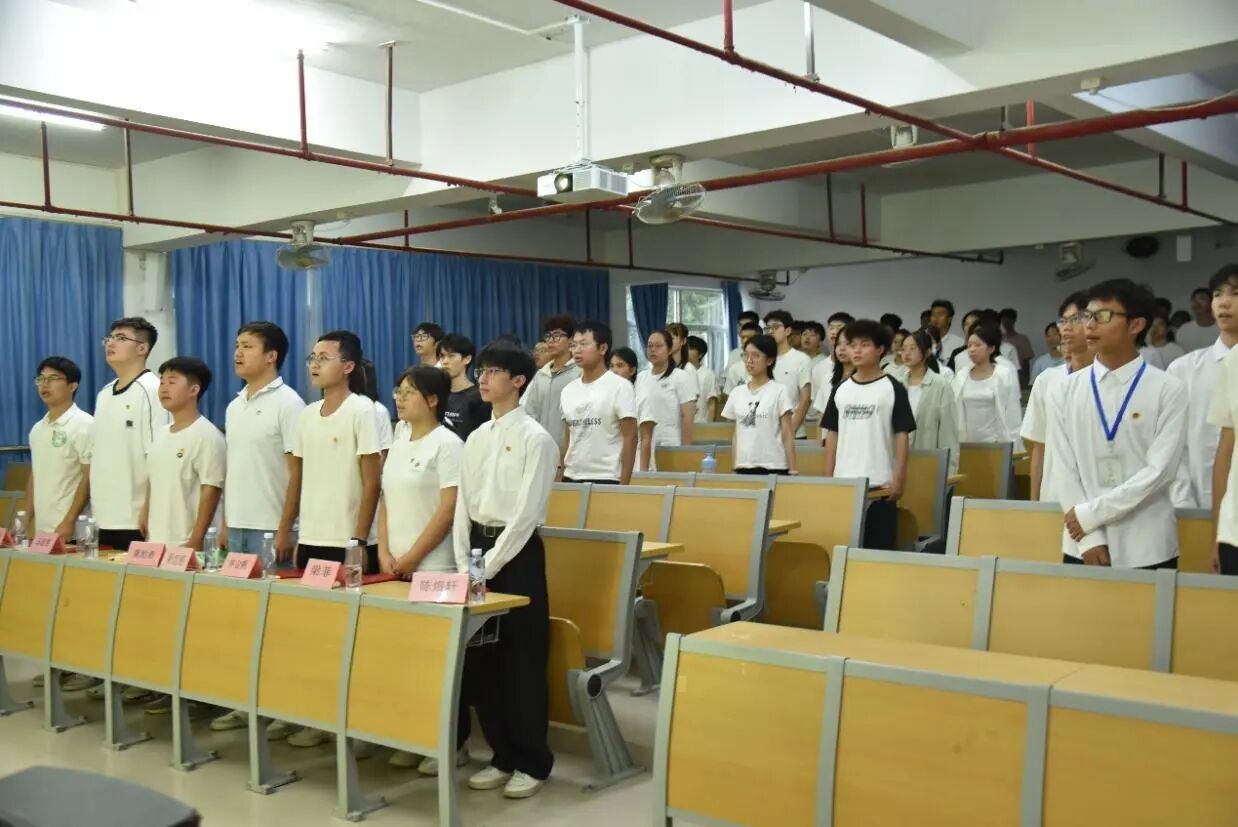 活动伊始,全体成员起立奏唱国歌,激昂的旋律点燃了在场学子的爱国情怀,为团课奠定庄重的基调。