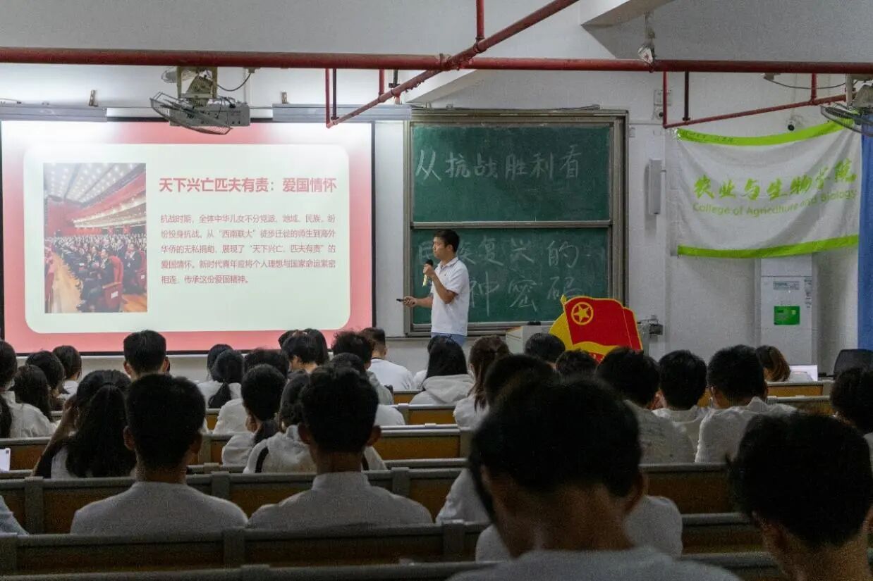 授课结束后,活动进入知识问答环节。主持人话音方落,同学们便踊跃举手参与抢答,现场氛围既紧张又热烈。一道道涵盖抗战历史与民族精神的知识题目,通过一问一答的形式,不仅检验了同学们的学习成果,更在寓教于乐中加深了大家对理论知识的理解与记忆,展现了农生学子勤学善思、积极向上的精神风貌。