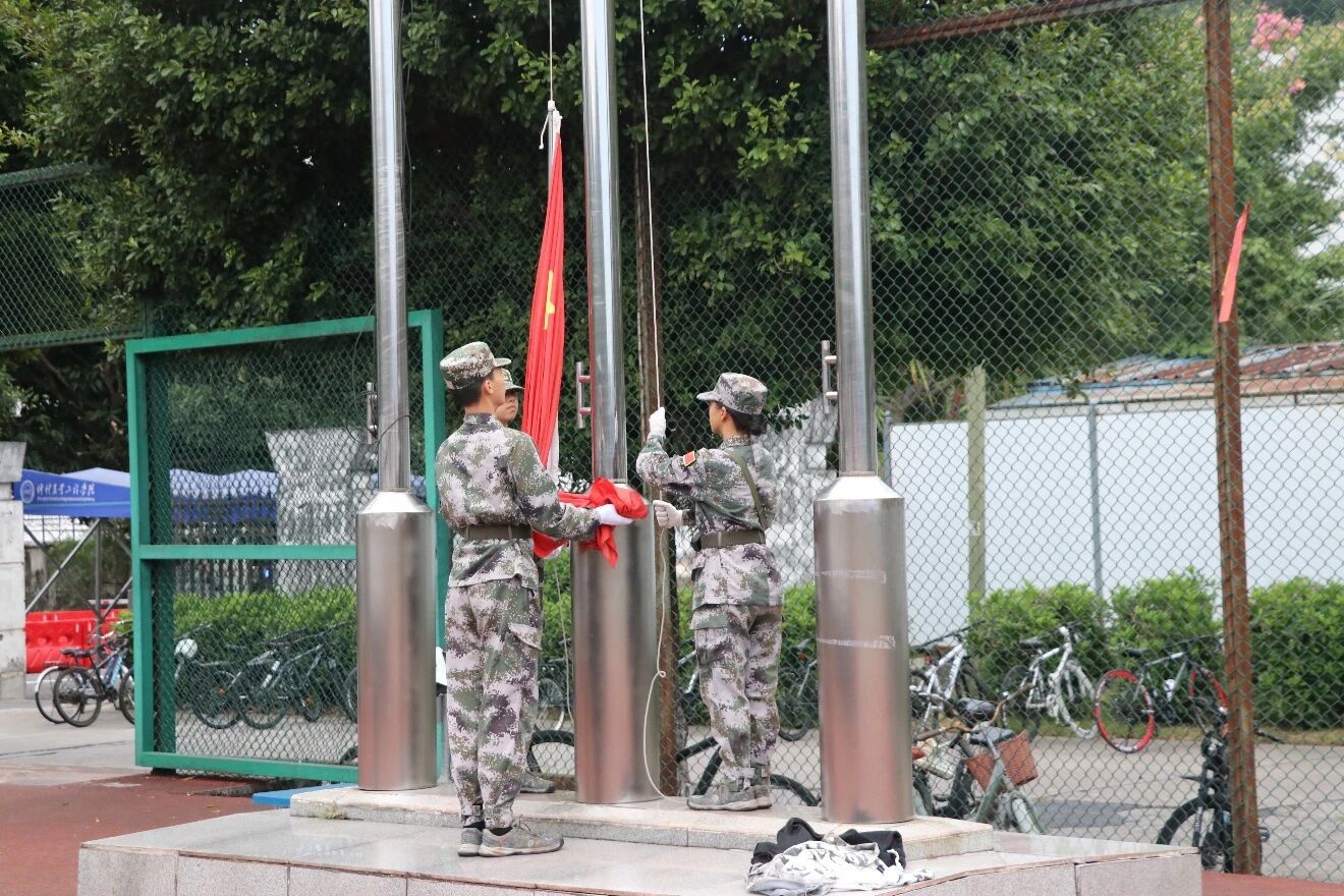 伴随晨光,公司国旗护卫队迈着整齐铿锵的步伐护送国旗至旗杆下。全体师生肃立行注目礼,庄严的国歌声响彻运动场,同学们高声齐唱,目光追随着五星红旗冉冉升起、迎风飘扬。