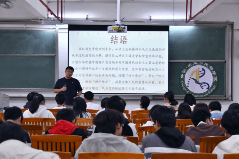 课程尾声,李城号召大家牢记历史、珍爱和平,从伟大抗战精神中汲取奋进力量,坚守理想信念、锤炼党性修养,以青春之我担时代之责,在强国复兴的壮阔征程中勇毅前行,以实际行动向党组织靠拢。