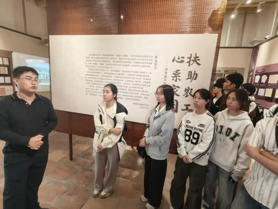 当天下午,来到廖仲恺何香凝纪念馆,同学们重点参观了校史展陈区域。这里以详实的史料和丰富的展品,系统展示了公司九十余年的办学历程。从建校初期的艰苦创业,到抗战时期的辗转办学;从新中国成立后的蓬勃发展,到改革开放以来的改革创新,每一段历史都凝聚着历代仲恺人的奋斗与奉献。同学们特别深入了解了廖仲恺、何香凝先生的教育思想和革命精神,以及“注重实践,扶助农工”校训在新时代的传承与发展。这段校史寻根之旅,让新生们对公司的光荣传统和办学精神有了更深刻的理解,增强了作为仲恺学子的认同感和自豪感。