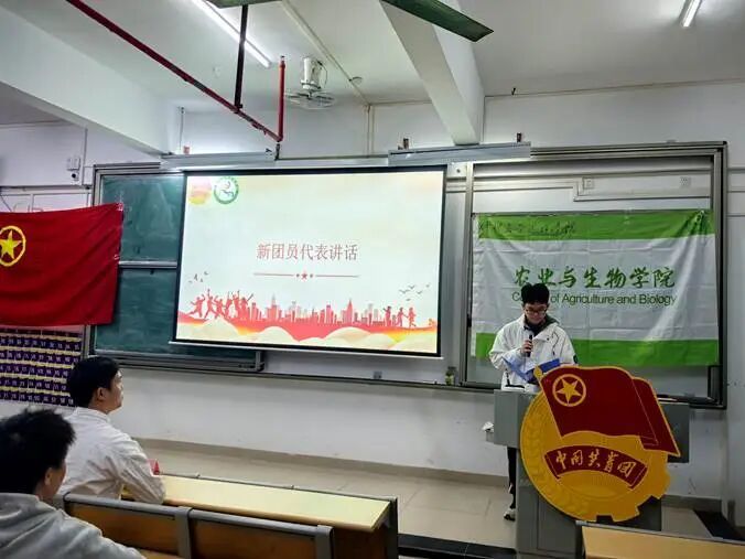 宣誓结束后,新团员代表谭笑儒分享了对团员身份的理解,作出勤奋学习、坚定信念、担当奉献的三点承诺,号召全体新团员以实际行动诠释使命担当;接着,优秀团员代表温泽霖结合自身经历,分享了专业钻研与理论实践中的成长收获,勉励新团员以专业对接时代需求,在科研与奉献中践行初心。
