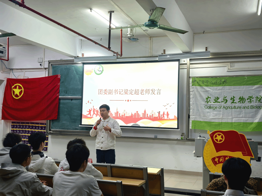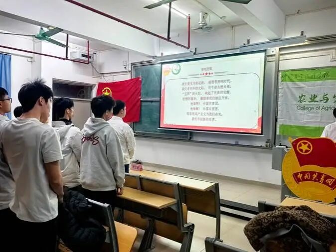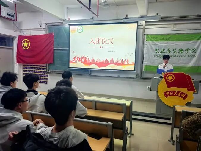 最后,梁定超对本次入团仪式进行了总结发言。他强调,共青团员是青年中的先进分子,新团员们要牢记入团誓言,格外珍惜这份光荣身份:思想上要积极向党组织靠拢,主动学习党的创新理论,筑牢信仰之基;学习上需刻苦钻研专业知识,深耕学业、练就过硬本领,以扎实学识回应乡村振兴等国家战略需求;行动上要践行志愿精神,积极投身社会实践,将小我融入大我,努力成长为有理想、敢担当、能吃苦、肯奋斗的新时代青年。仪式在激昂奋进的团歌中圆满落下帷幕。全体人员起立高唱,歌声中饱含着青春的激情与奋斗的力量。