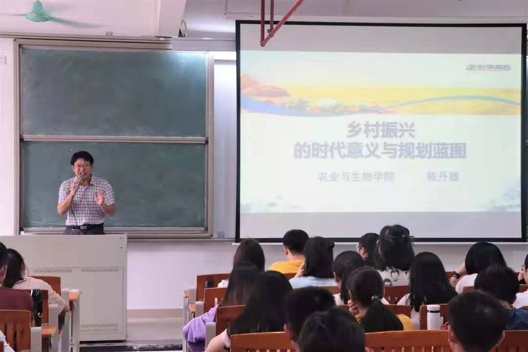 其次,陈丹雄书记以多国农业发展具体的政策为例子,向大家讲授了我国乡村振兴战略的重要意义、总要求、主要原则以及五大中心任务展开这四个要点。他强调,实现乡村振兴战略是新时代农业农村现代化的新起点新征程,也是属于农生学子大展身手的一个绝佳机会,大家一定要好好把握住这次机遇,努力学习专业的知识,夯实专业技能基础,精准把握时代动向,为服务乡村振兴、响应国家号召做好充足的准备。