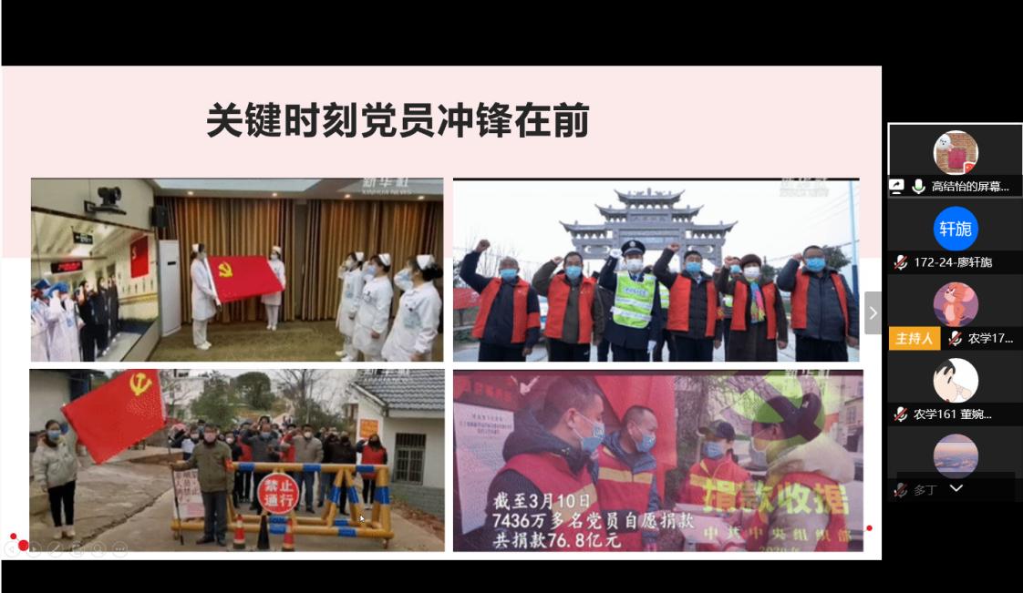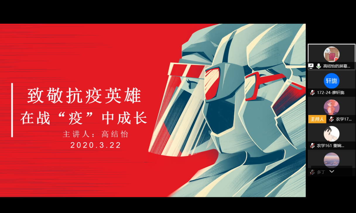 为深入贯彻落实习近平总书记关于新冠肺炎疫情防控工作的重要讲话和重要指示精神,增强党员的责任心与使命感,3月22日下午,tyc122ccvip员工第一党支部通过腾讯会议平台举行了“致敬抗疫英雄,在战‘疫’中成长”专题党课,本次党课由tyc122ccvip员工第一党支部书记高结怡主讲,员工第一党支部全体员工党员参加了本次党课。