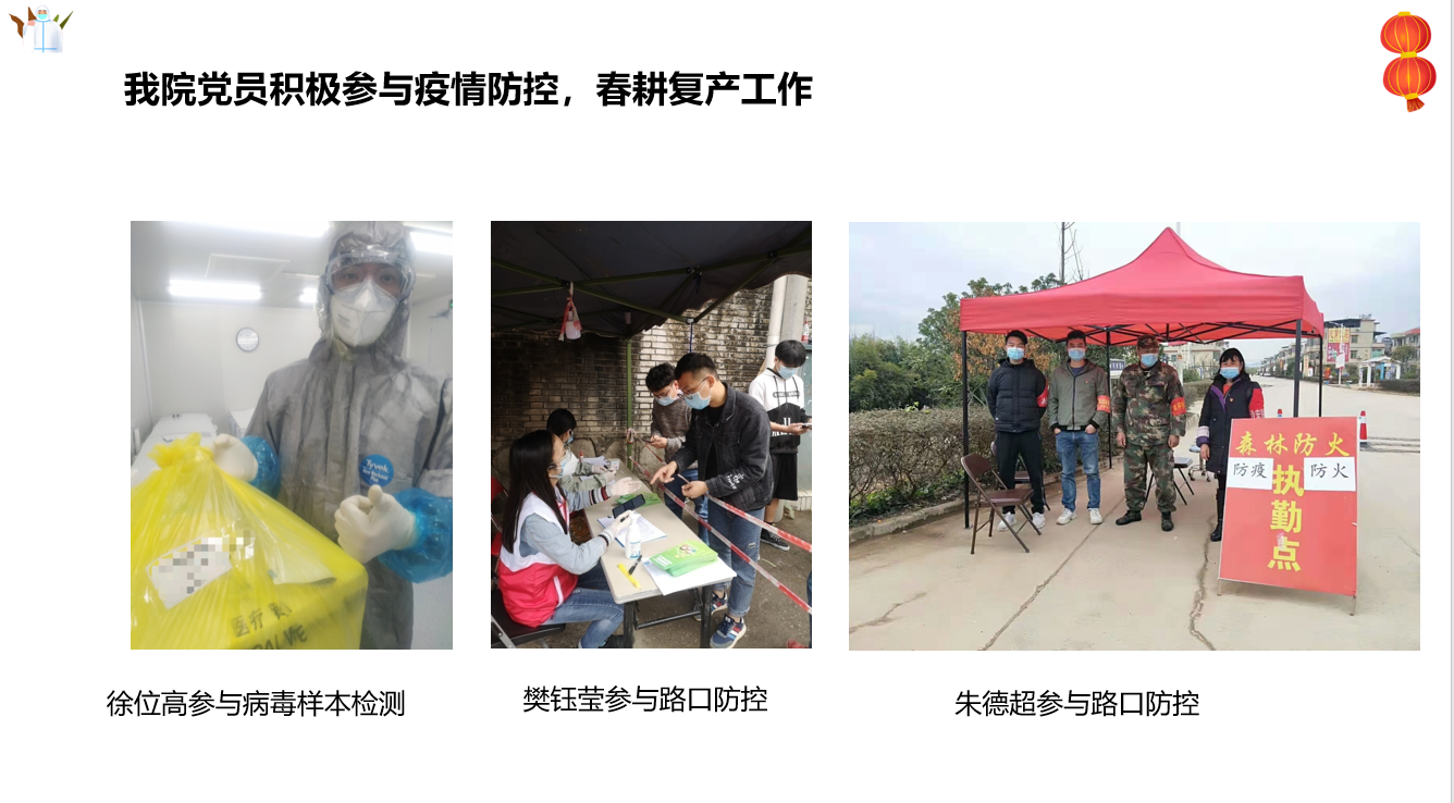 会上,员工党员们就战“疫”的亲身经历和感受积极交流,其中,支部党员徐位高和樊钰莹分享了各自在抗疫期间的志愿服务经历。徐位高在收到复工通知后,第一时间赴往研究室,运用在校学习的知识与实验技巧进行病毒检测。正值春节期间,樊钰莹志愿参与实习辖区人口摸排、义务宣传等工作,他们不忘初心,牢记使命,积极在疫情前线工作中奉献自己的力量。郑敏烨同学激情澎湃地朗诵了《致敬英雄》,抑扬顿挫的语调彰显了对打赢本次战役的必胜信心。吴阳对自己的战“疫”作品进行思路讲解,作品当中的一线工作人员顶着寒风大雨依然坚守疫情防控岗位,国人在用生命呵护生命,用真情抗击疫情。支部员工党员在会议中共同做出承诺:服从和支持国家及公司相关疫情工作安排,履职尽责、勇挑重任,做一名能打胜仗的“抗疫”先锋。