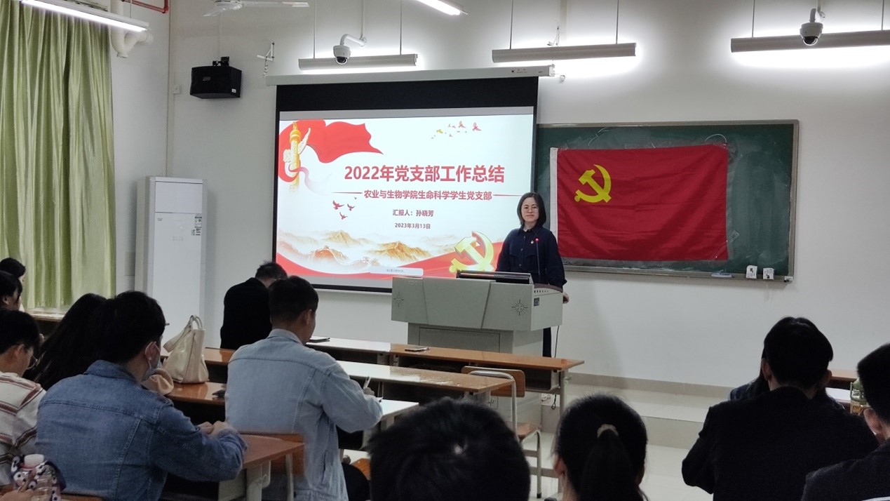 党支部书记孙晓芳代表党支部委员会向全体党员作2022年党支部工作总结和检视报告。她指出2022年支部工作存在的不足,并点明下一步努力方向。鼓励在场党员同志继续深化学习理论知识,将学习成果转化为实践动力,开拓进取、守正创新。