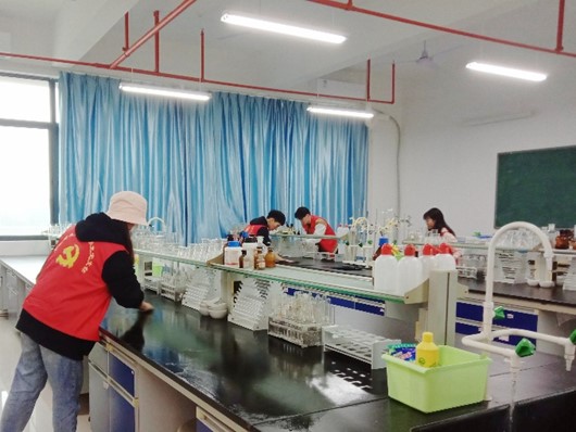 在实验室老师的指导下,党员们分批对公司实验室进行全面的清扫,对实验台、椅子、地板、黑板等每一个角落,都认真清理,不留死角。实验室内种类繁多的实验用品、精密的实验仪器、各类教学设备及模型等,也都在老师的指导下擦拭整洁。