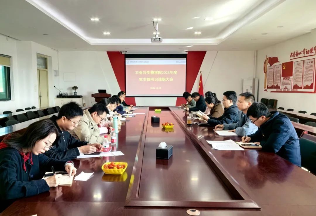 根据公司党委《关于做好2023年度党组织书记抓基层党建述职评议考核工作的通知》(仲组字〔2023〕25号)精神,12月25日下午,农业与生物公司党委在生科A607召开2023年度党支部书记述职评议大会。会议由公司党委书记周超雄主持,公司党委委员,各党支部书记、支部委员和办公室副主任参会。