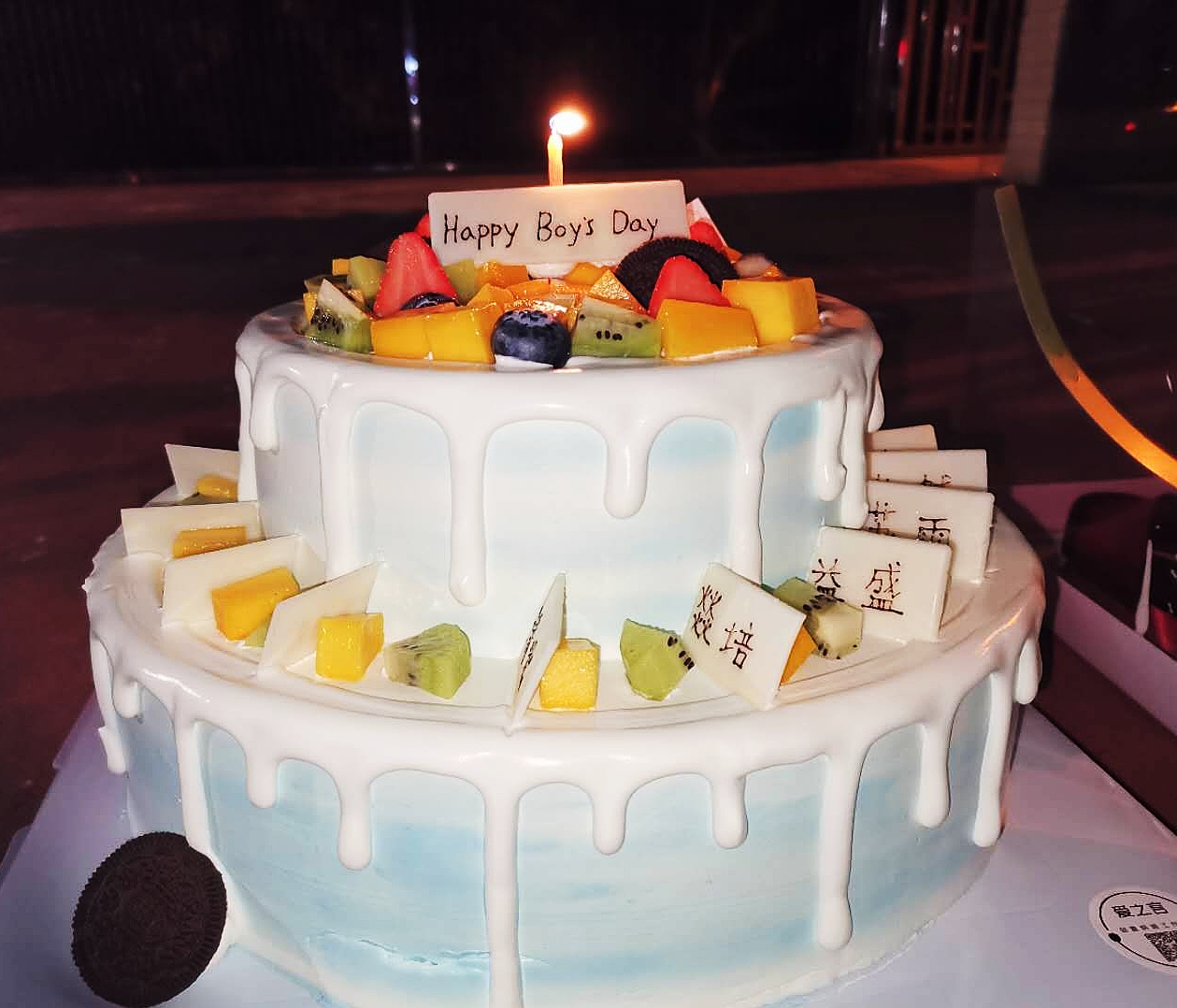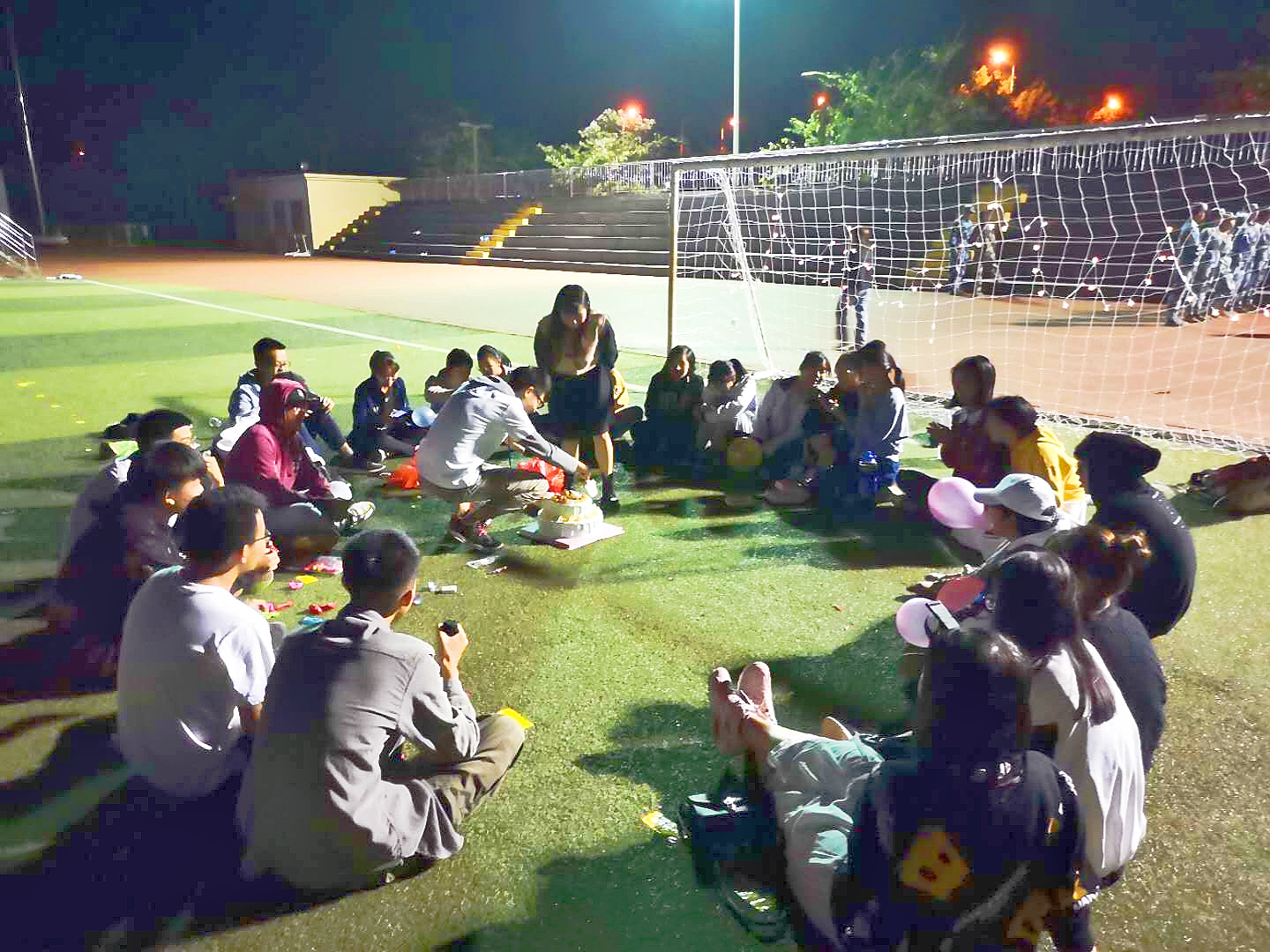 生科191全体女生总共精心为我们班的男生和各位师兄准备了三次男生节礼物。第一次我们突袭送糖水,第二次我们约定到后门唱k,第三次我们订蛋糕买零食到操场玩,风是真的冷,但大家的笑是真的甜!