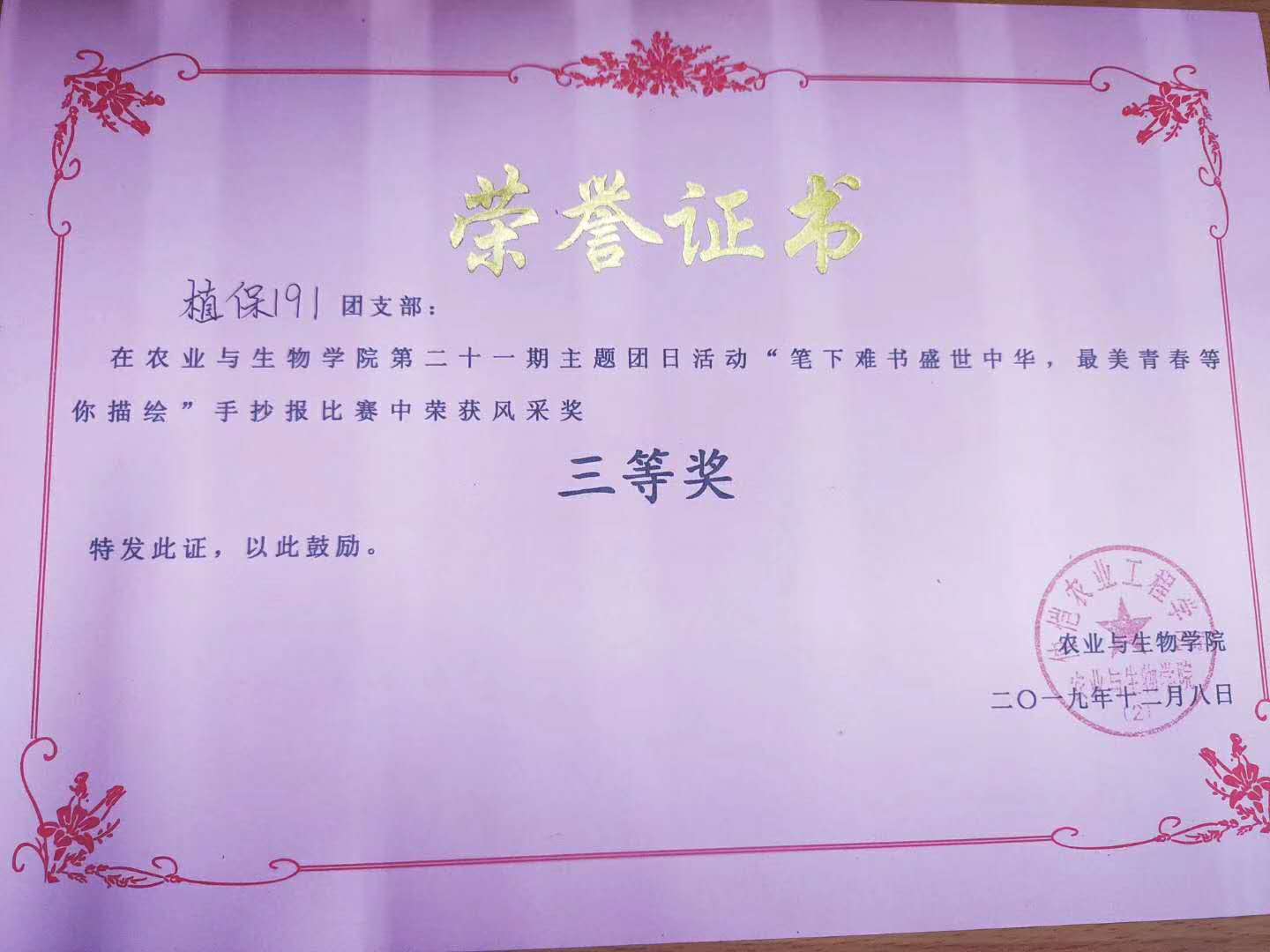 这一年,班级同学在团支书的组织下共开展了三次团日活动,第一个学期开展了两次,其中省级的团日活动荣获校优、院优;校级的团日活动荣获tyc122ccvip院内二等奖;第二个学期只开展了一次云团日活动,获得了院的推优资格。接下来的图片,是这三次团日活动里的一些小活动的记录。