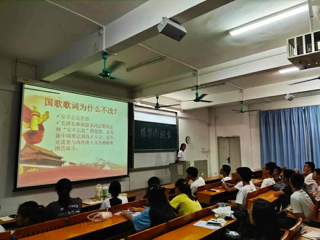 这张图片,反映的是我们在第一个学期期末的时候,班主任凯哥给我们植保两个班开的期末考试动员大会。同时,凯哥也在会议上分享了一些自己的故事,介绍了一些关于考研的事。