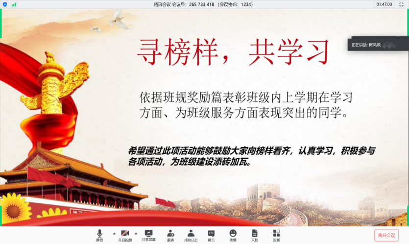 在与各班委一起讨论、综合了凯哥、助班轩哥、诗晴姐还有大家的意见后,用了将近两个月的时间,我们制定好了班规,并召开了这场班规发布会,对班规进行介绍并宣布开始实施。