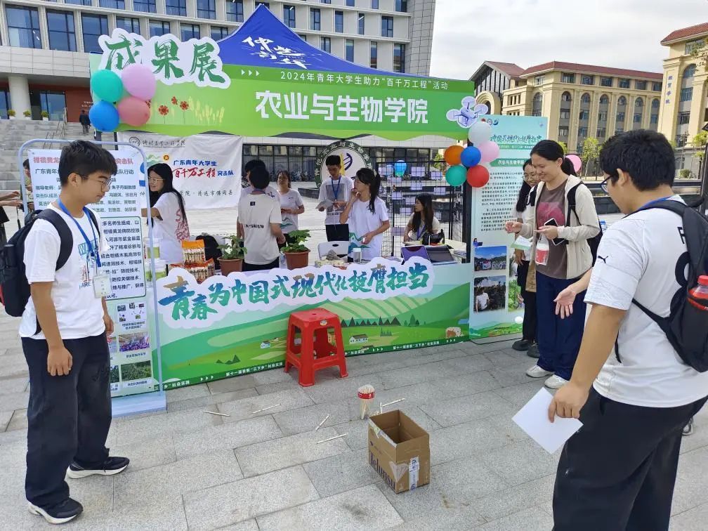 根据公司《关于开展第十一届暑期“三下乡”社会实践活动暨广东青年老员工“百千万工程”突击队行动成果展系列活动的通知》相关要求,11月5日,公司在白云校区图书馆门前广场参加“三下乡”成果展。公司党委副书记、董事长廖明莅临公司展位参观成果展示,公司党委书记周超雄,党委副书记张金凤、辅导员梁定超到活动现场,了解活动开展情况。
