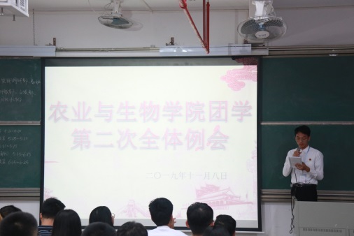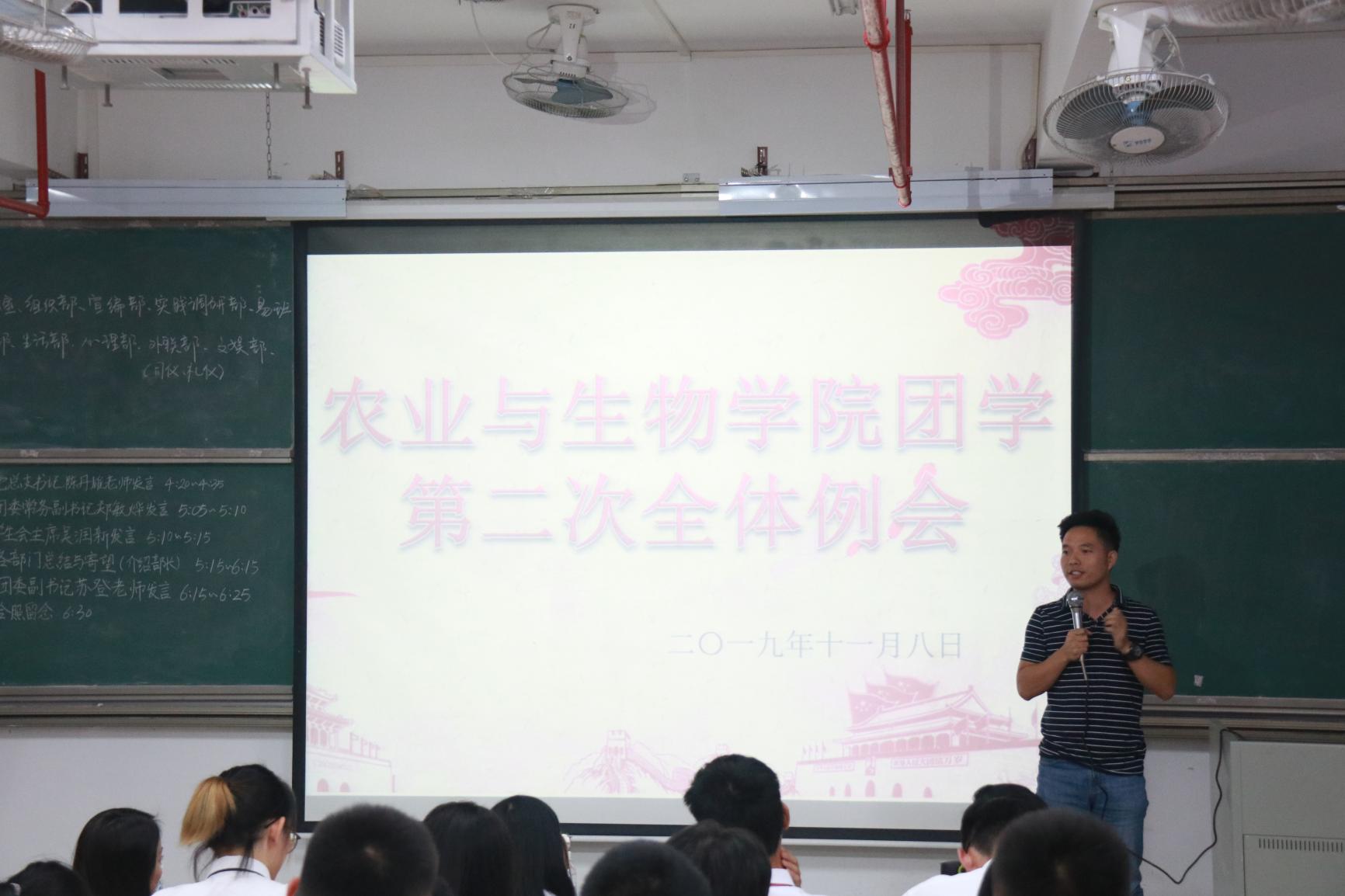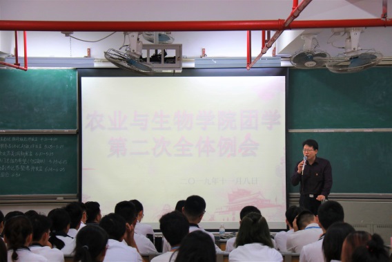 11月8日下午,tyc122ccvip于白云校区综合楼210室召开团学第二次全体例会。农业与生物公司党总支书记陈丹雄出席会议并讲话。团委副书记苏登、校团委代表以及团学部长和干事参加了本次例会。会议由苏登主持。