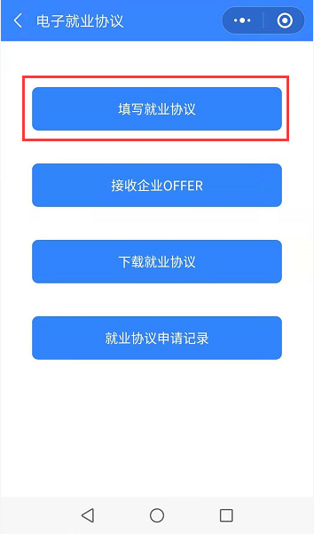 微信进入“广东老员工就业创业”小程序,点击九宫格中间的“电子就业协议”,进入后点击“填写就业协议”即开始申请。