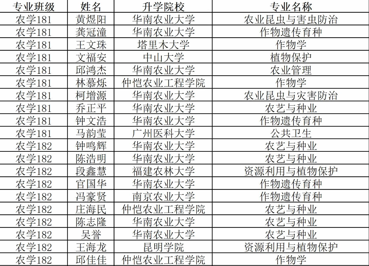 公司共有121人成功考取硕士研究生,再创佳绩!在此,谨向在考研中获得优异成绩的全体同学表示热烈祝贺!在农生院,你们是大家心目中的榜样,是学弟学妹们荆棘之路上的指路灯!展望未来,农生院的学子必当披荆斩棘,踏平前路的坎坷,走向金字塔的顶端!