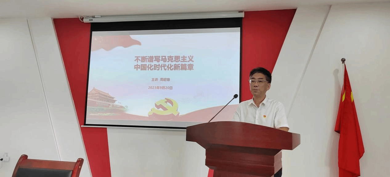 周超雄作《不断谱写马克思主义中国化时代化新篇章》专题报告。他从“思想理论的飞跃是马克思主义与时俱进的品质、深刻领悟马克思主义中国化时代化新的飞跃”深入解读“不断谱写马克思主义中国化时代化新篇章”的深刻内涵。他强调,在公司纪律教育学习月、师德建设主题教育月之际,要深刻认识到高校教师承担着为党育人、为国育才的光荣使命,要树立“躬耕教坛、强国有我”的志向和抱负,要坚守道德底线,坚守师德红线,艰苦奋斗、攻坚克难,争做忠诚于党和人民教育事业的优秀教师。